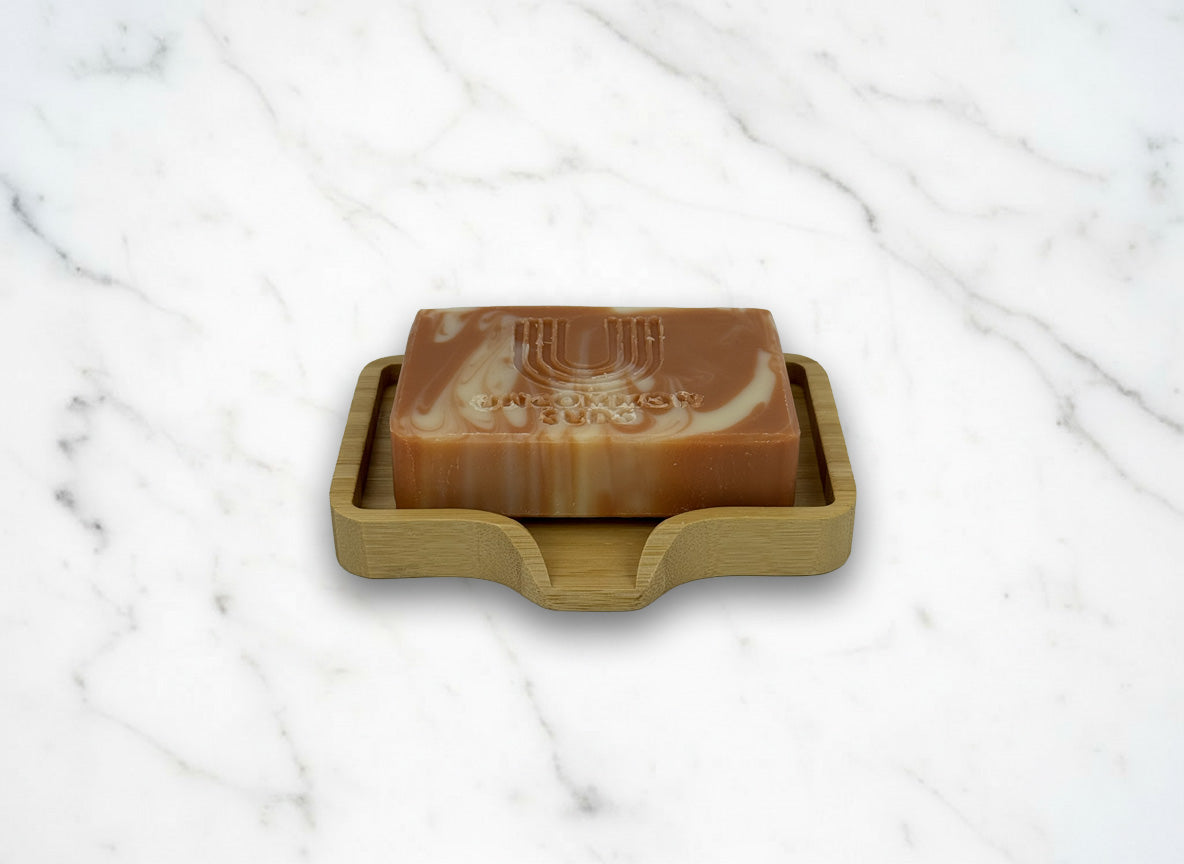 Bamboo Wavy Soap Dish with Uncommon Suds Label